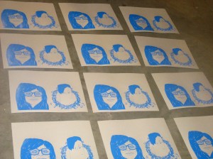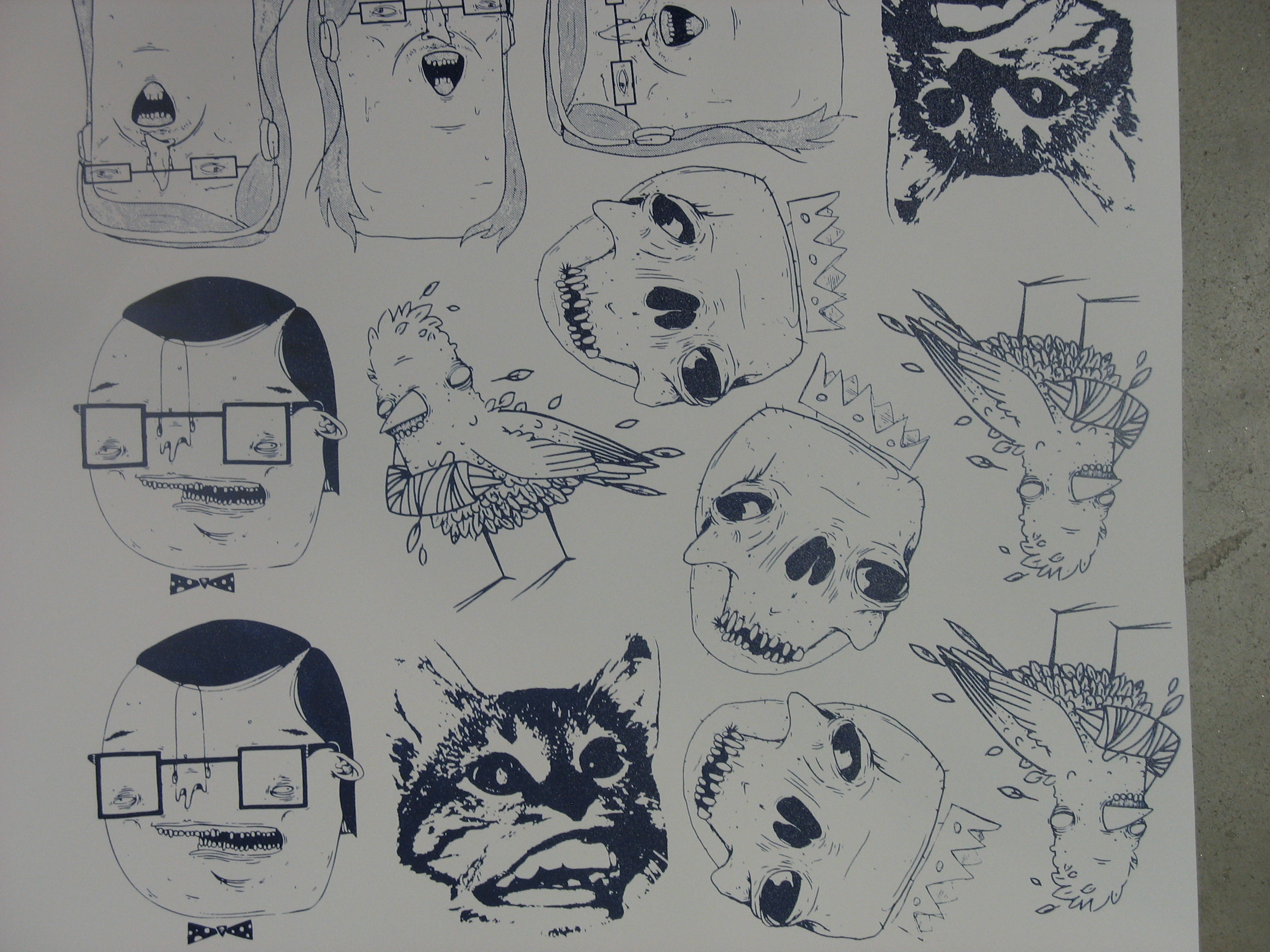 things have been hectic because we’ve been preparing a lot of new product to share with all of you.  we have full color postcards, five new sticker designs, and four new mini prints that we’ll be selling for only five dollars each! we’re going to debut everything this saturday, but here are a few sneak peek photos of our process these last two weeks.