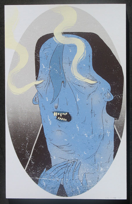 “the sorcere’s gaze” by karl deuble. five color print on stonehinge, 9″ x 14″. 1 of 10 prints. $80 framed, $40 unframed.