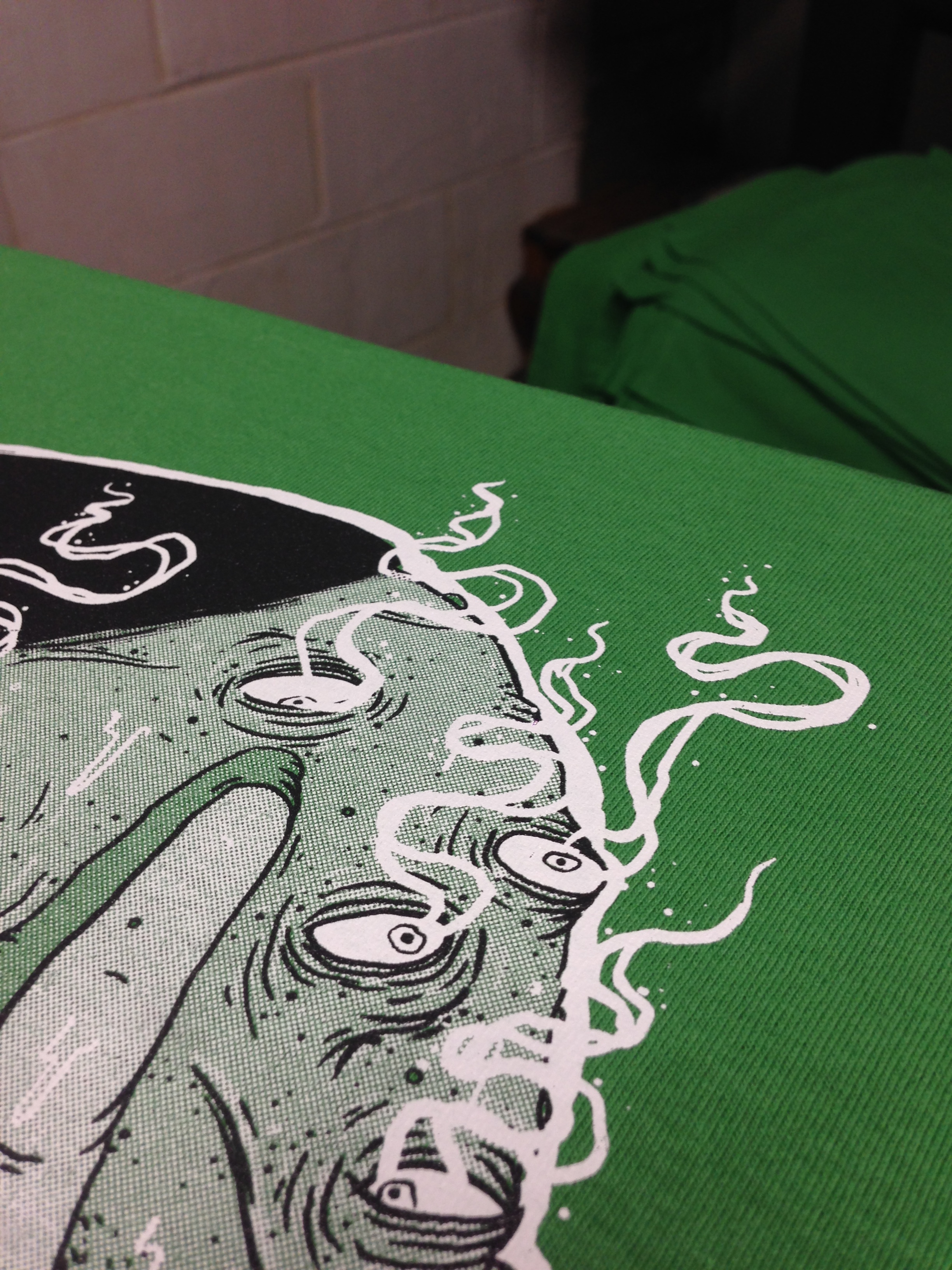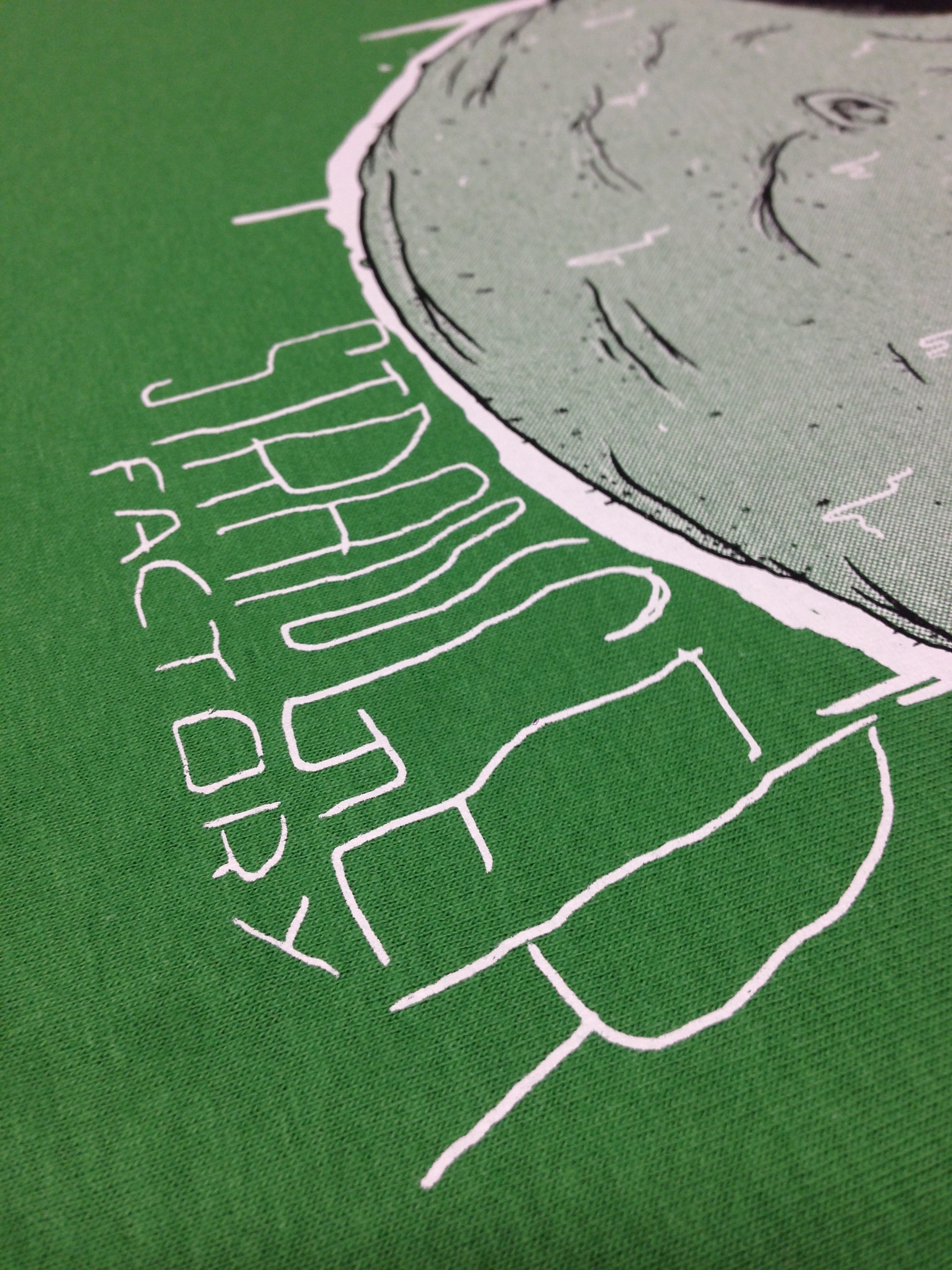 sometime last year, k was asked to come up with a design for an exclusive stranger factory t-shirt. he has been working with the good people at stranger factory for well over a year, printing various jobs for them, and as mentioned in this post, he was invited to participate in their annual halloween-themed art exhibition.